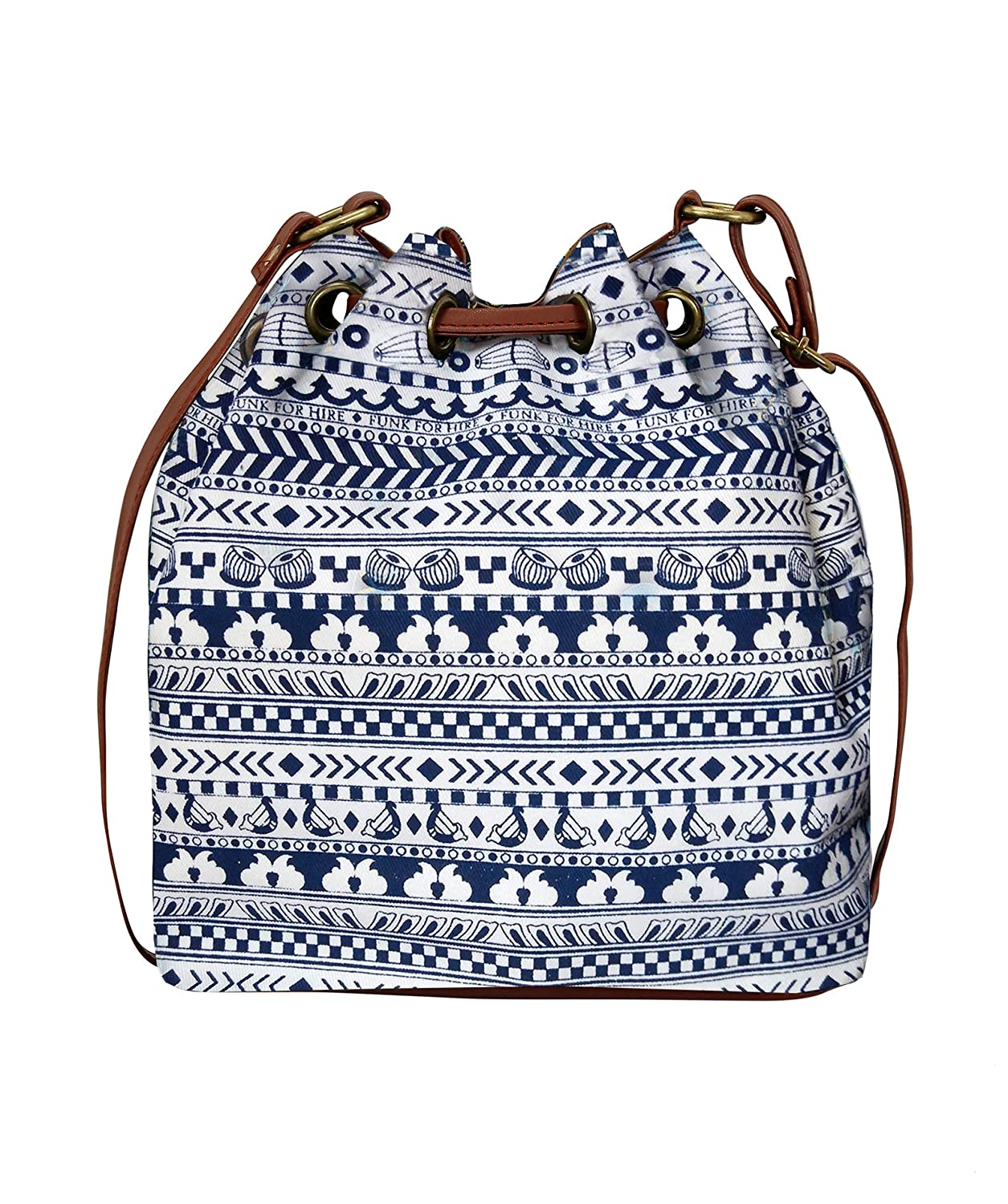 - Material: Cotton canvas and leatherette bag with fun and quirky print screen printed all over. The bag is internally completed neatly with waterproof nylon lining.