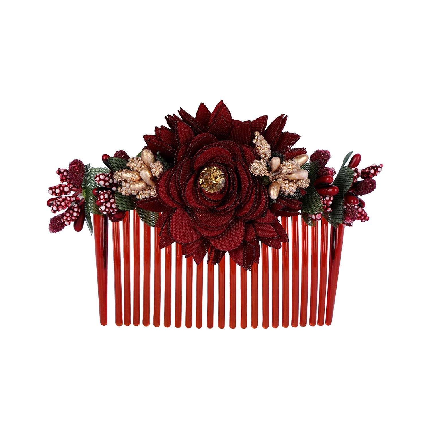 Indo-Western Style Multicolour Acrylic Material Fancy Artificial Flowers Embedded Statement Bridal Hair Comb Pins/Hair Pins for Women Pack of 3