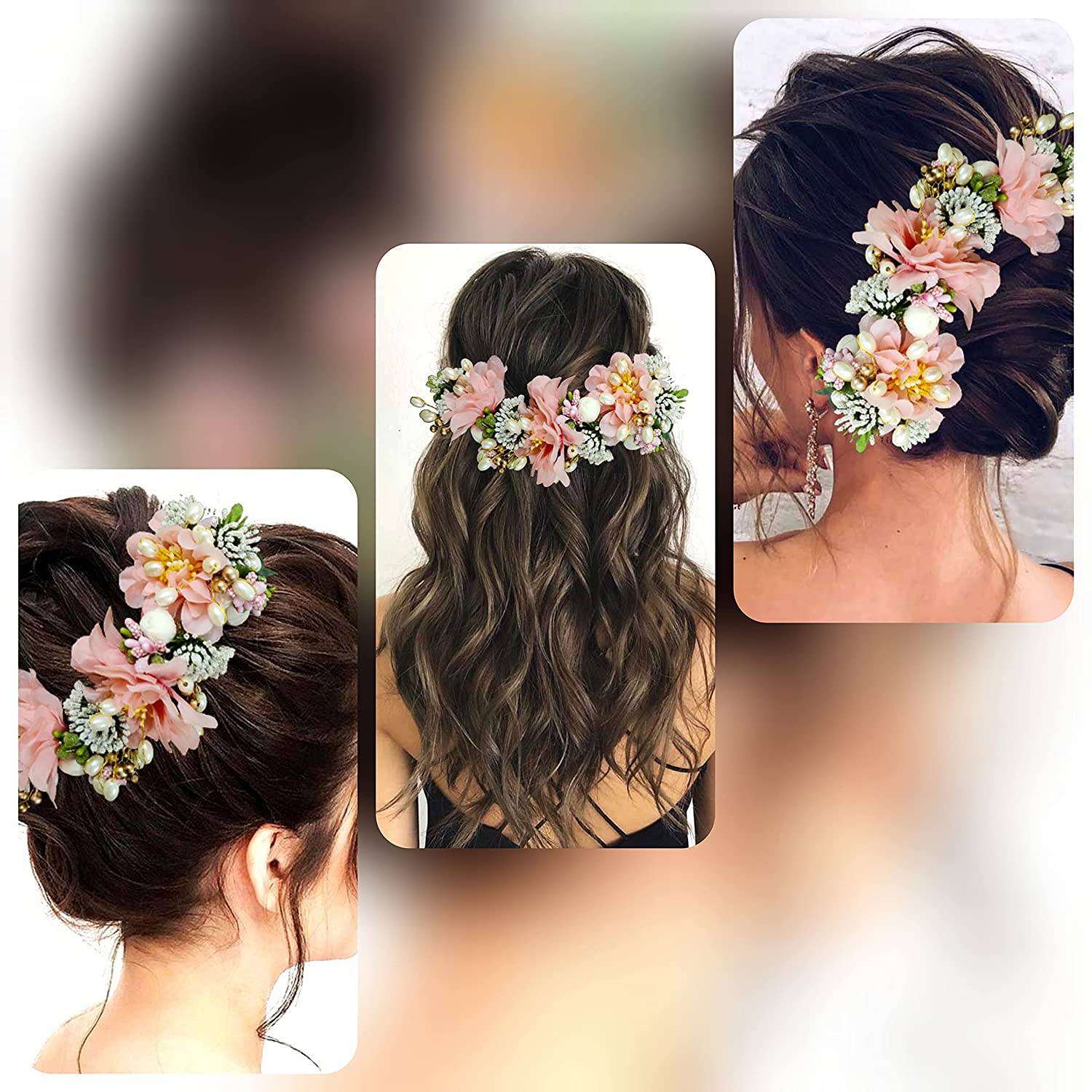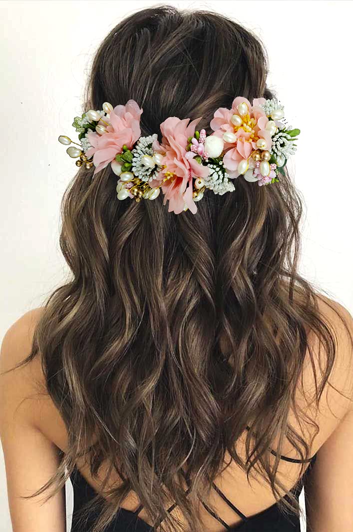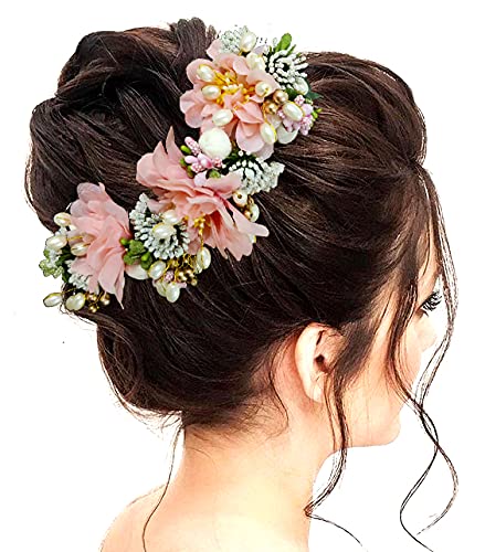 2218 Artificial Flower Hair Accessories And Hair Pin for Women (Peach), Pack of 1
