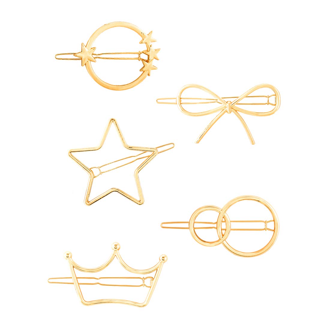Hair Clips for Women Girls Hair Accessories for Women Golden Hair Clip 5 Pcs Hair Clips for Girls Star Bow Hairclips Alligator Clips Hair Pins for Women and Girls Gift For Women & Girls