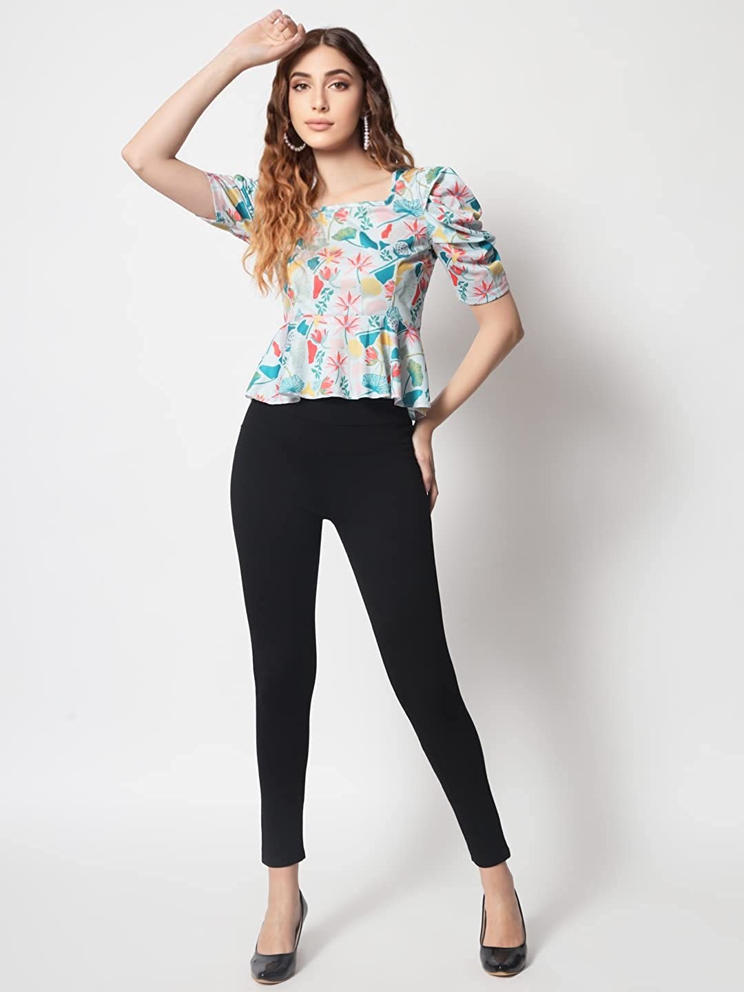 - Puff Sleeves: The puff sleeves on this top add a unique touch to the design. Stretchable: This top is stretchable, making it a comfortable fit for a variety of body types and sizes
