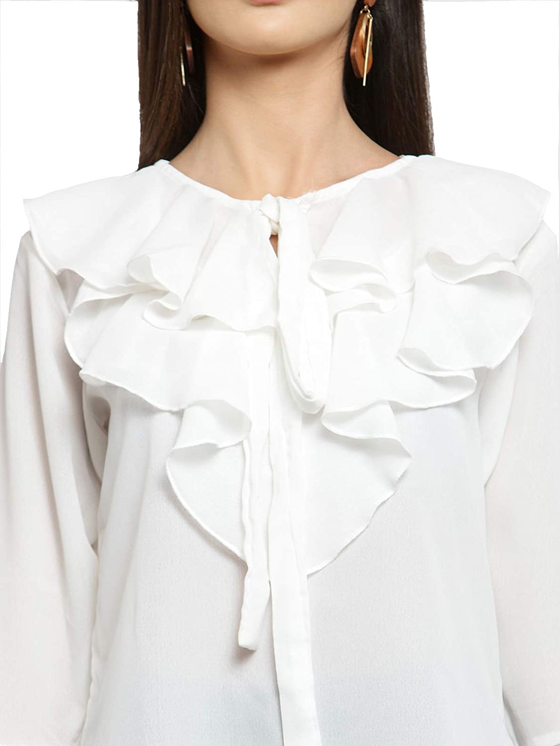 Women's Georgette Ruffled Bell Sleeves Tops