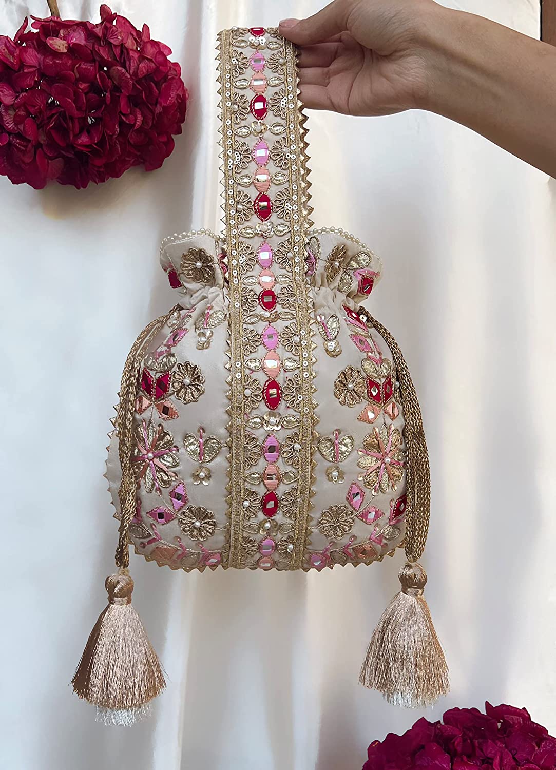 • Potli Bag is a Ethnic Stylish Clutch, are designed for ladies to carry at any party or special occasions at any time of the day. Even brides love to carry this at their weddings as a purse. Potli bag looks very nice with any traditional dresses.