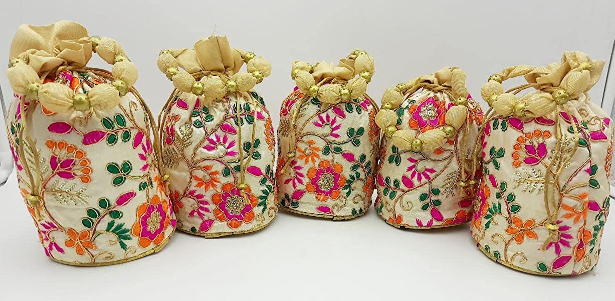 Golden Potli Batwa Bag Bridal Purse Women handbag Shagun Pouch Return Gifts Beads Handle