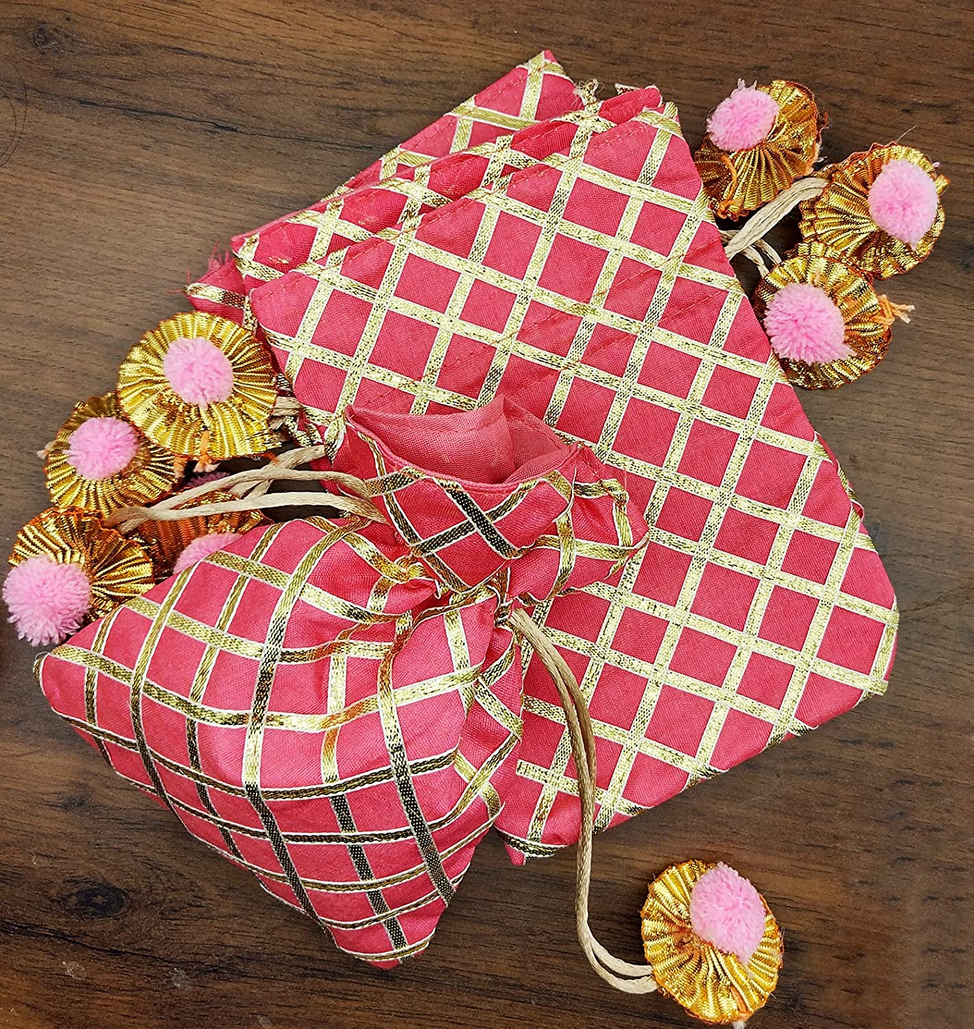 - Brown Leaf Gorgeous Indian Traditional Small Drawstring Bags Pouches Potli For Gift Wedding Jewelry Packaging Bridal Party Favors Assorted