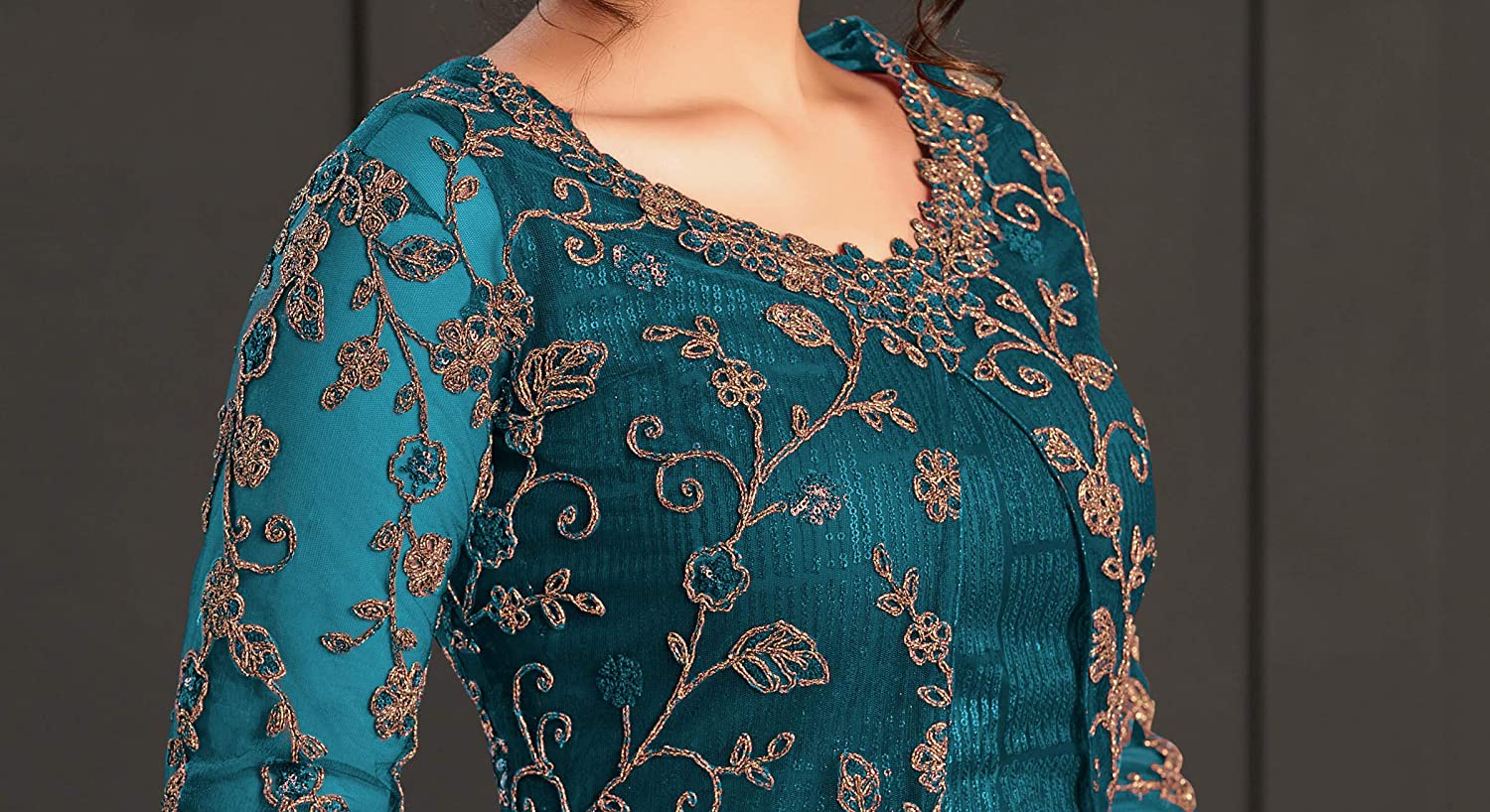• Top: Heavy Butterfly Net With Embroidered With Codding With Sequence Work (Semi-Stitched), Top Size: Max Up To 42",Top Size: Max Up To 58"