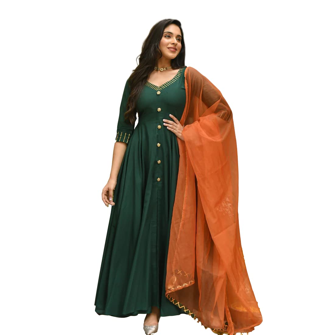 Women's Cotton Blend Anarkali Solid Kurta with Dupatta