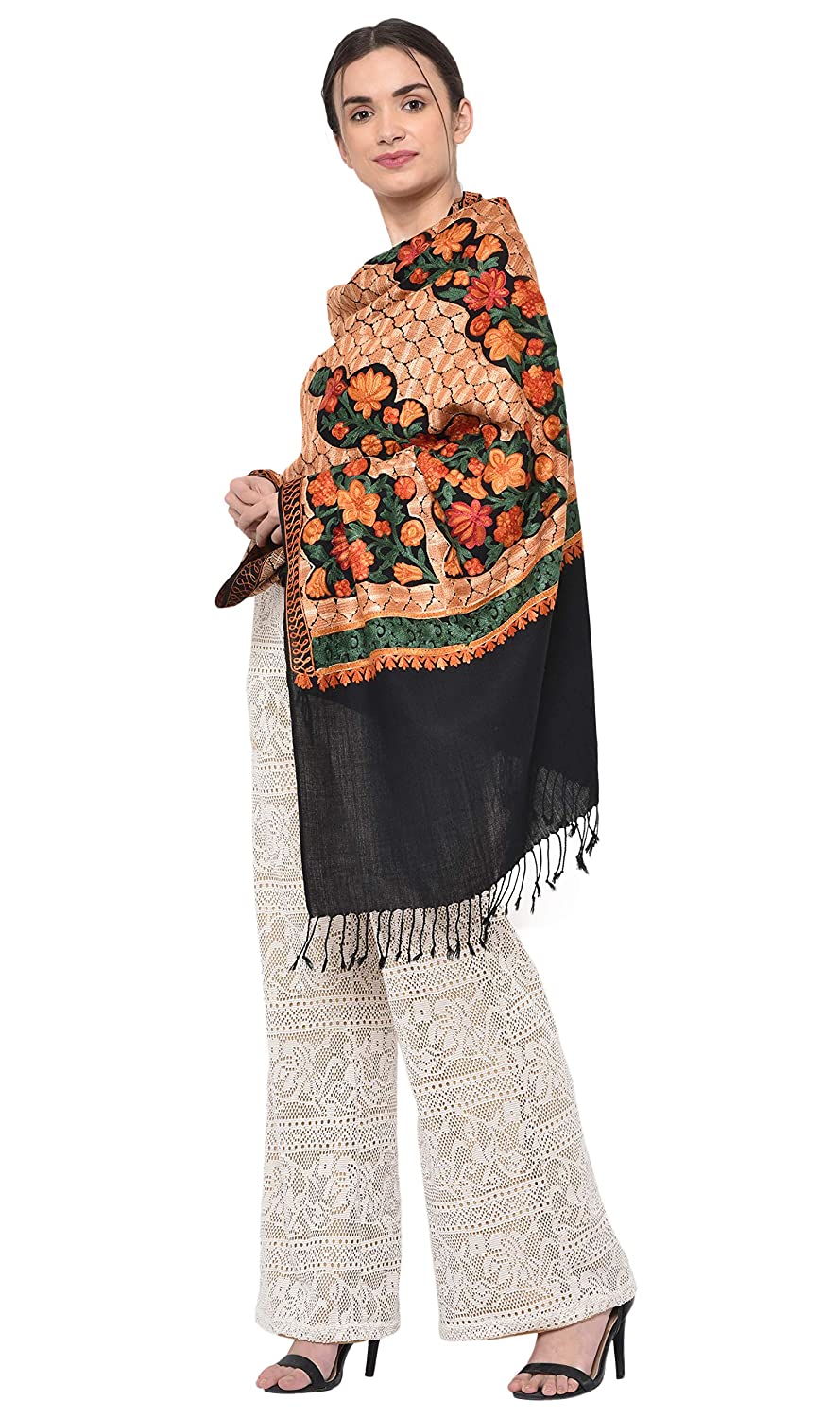 - Heavy Jaal Aari Embroided Cashmilon Kashmiri Stoles