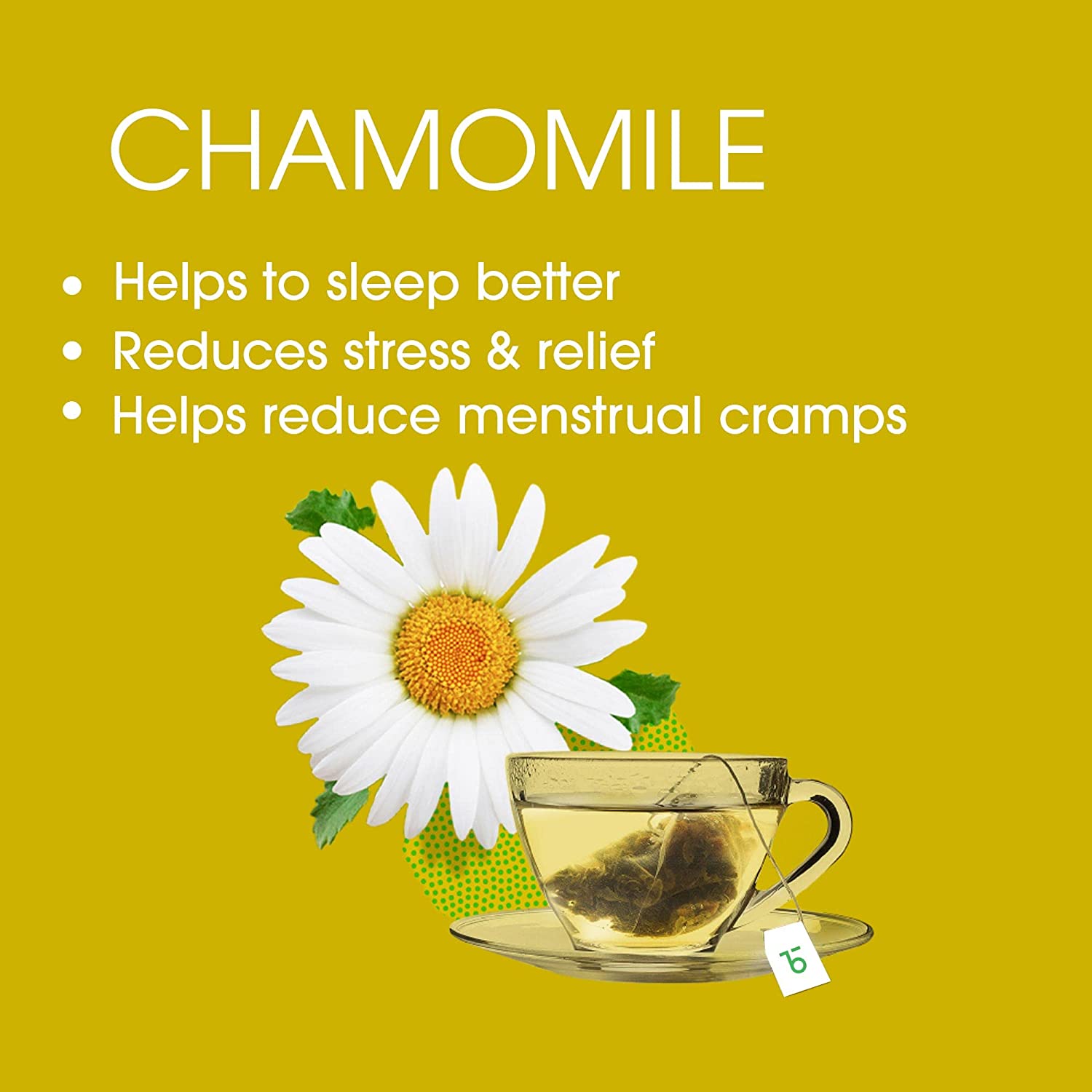 • HEALTH BENEFITS: A botanical that consumed for several health conditions, Chamomile is naturally rich in antioxidants; Blended with green tea, its soothing property help to reduce stress, best for a good night’s sleep and aids digestion too