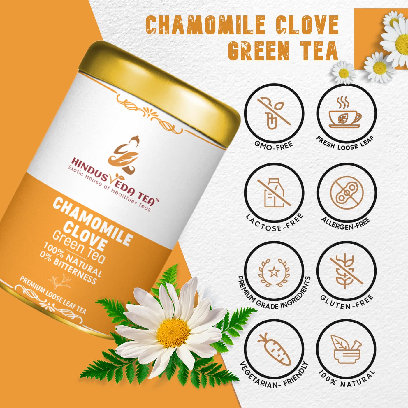 • SOFT CHAMOMILE FLOWER HEADS blended well with Clove and Whole Leaf Green Tea ; Provides complete zen moment