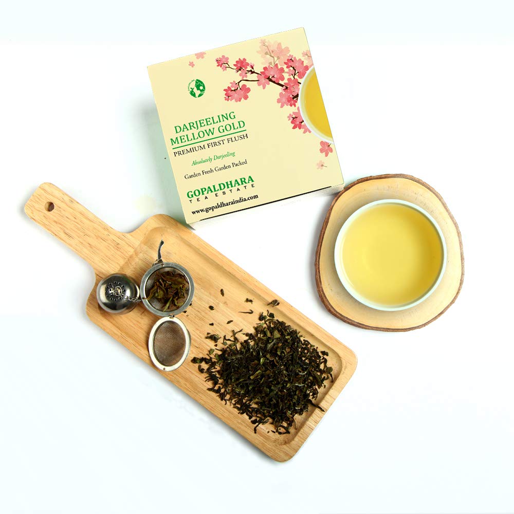 • PROFILE: Our Mellow Gold tea is famous for its lively bite and abundance of fresh flavour. The finer notes in spring teas from Darjeeling mostly range from citrus to honey like sweetness. The texture is mostly herbaceous and vegetal. It brews into a yellow colored fully transparent liquor with a clean and delicate crispness to it. The finish is clean and the taste is mellow, something that is very unique to the hills of Darjeeling.