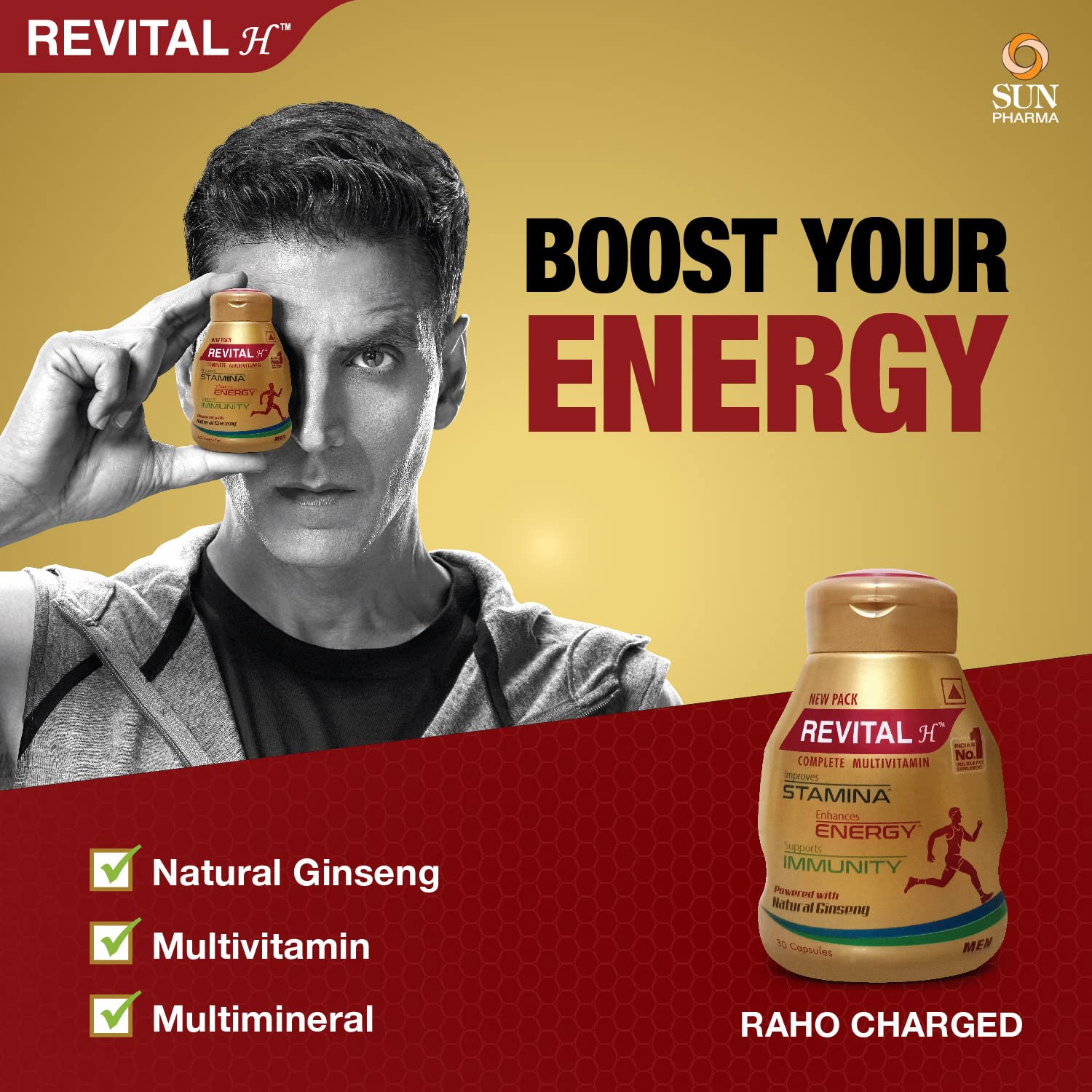 • Revital H multivitamin capsules for daily health is a balanced combination of Natural Ginseng, 10 Vitamins and 9 minerals which can help fill in nutritional gaps and support general well-being for a healthy, active lifestyle
