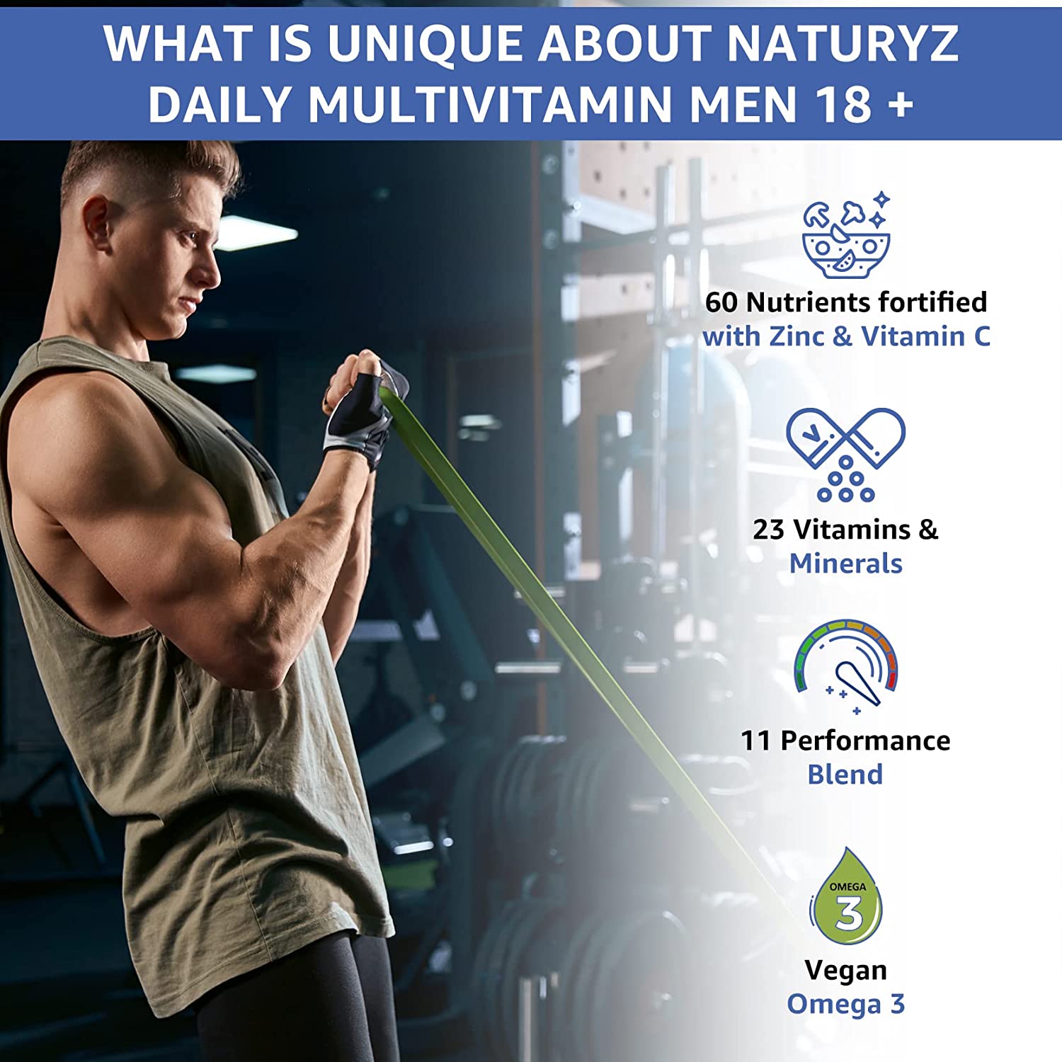 • ✅ SUPPORTS OVERALL HEALTH: NATURYZ Multivitamin Men 18+ contains mostly 100% RDA of the 23 essential Vitamins and Minerals to support overall health by improving Energy, Immunity & Stamina