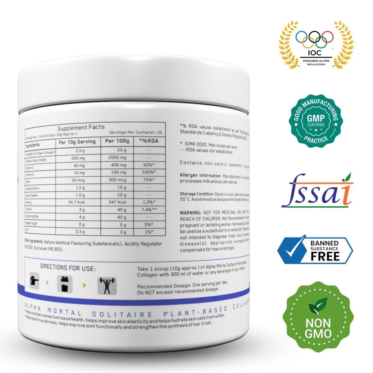 - FSSAI certified- Alpha Mortal Collagen powder is FSSAI certified