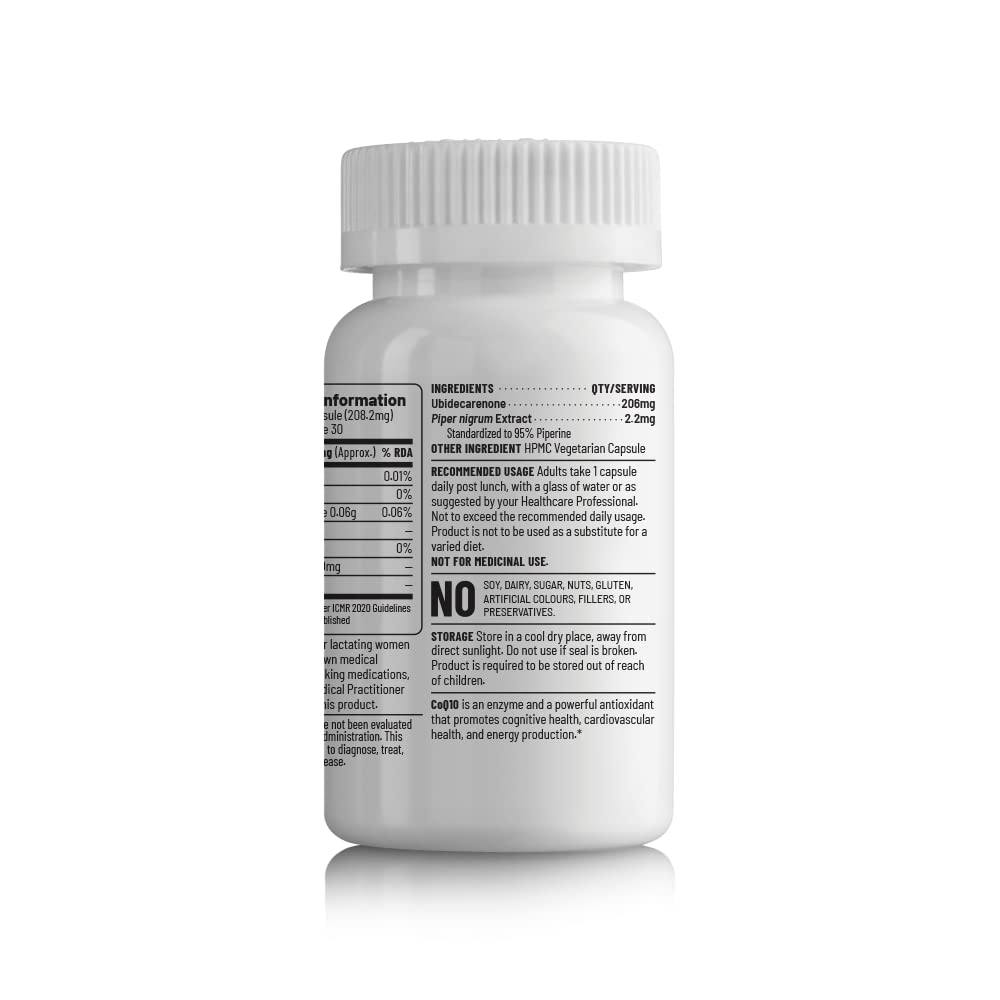 200mg of elemental CoQ10. We also include 10mg of Piperine which assists