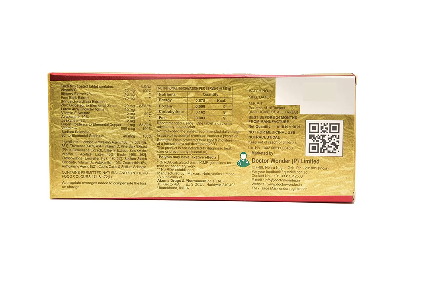 | Special Ingredients | Lutein & Zeaxanthin With Vitamin C, Bilberry Extract, Vitamin E, Astaxanthin, Vitamin A |