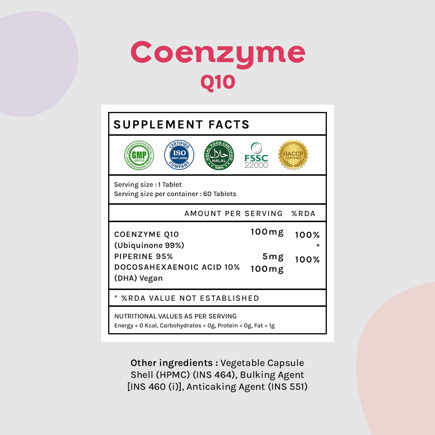 | Special Ingredients | Coenzyme Q |