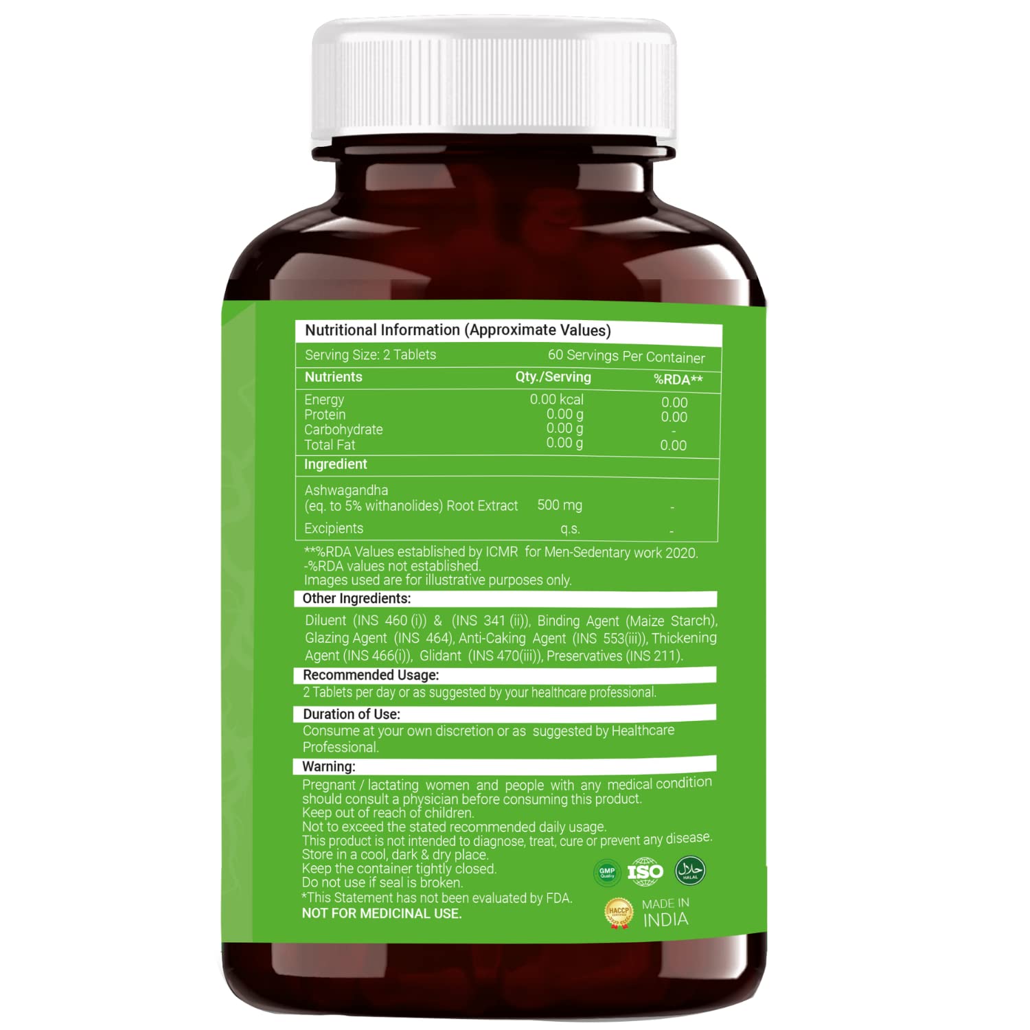 - RECOMMENDED DOSAGE: Take two ashwagandha capsules everyday or as recommended by your healthcare professional.