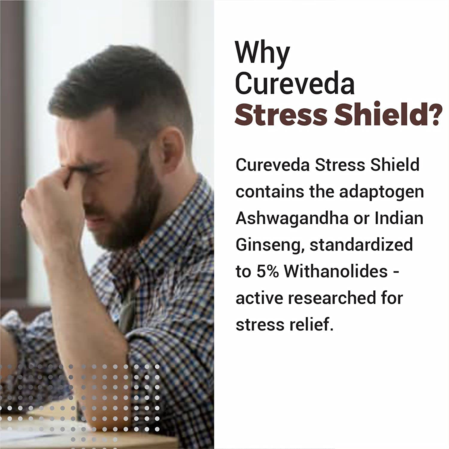Cureveda Stress shield contains the purest form of Ashwagandha or Indian