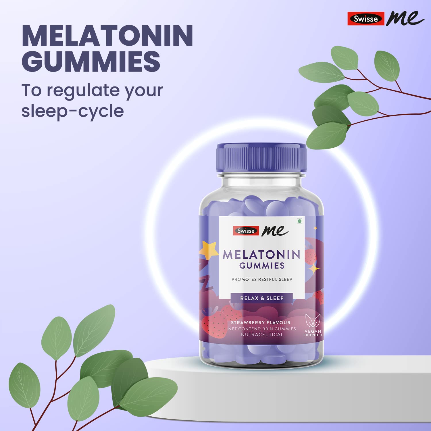 • PROMOTES RESTFUL SLEEP: SwisseMe Melatonin gummies are designed to regulate your sleep cycle without forming a habit or any dependency. Each gummy contains 5 mg of Melatonin, which is a natural sleep hormone that helps you snooze better