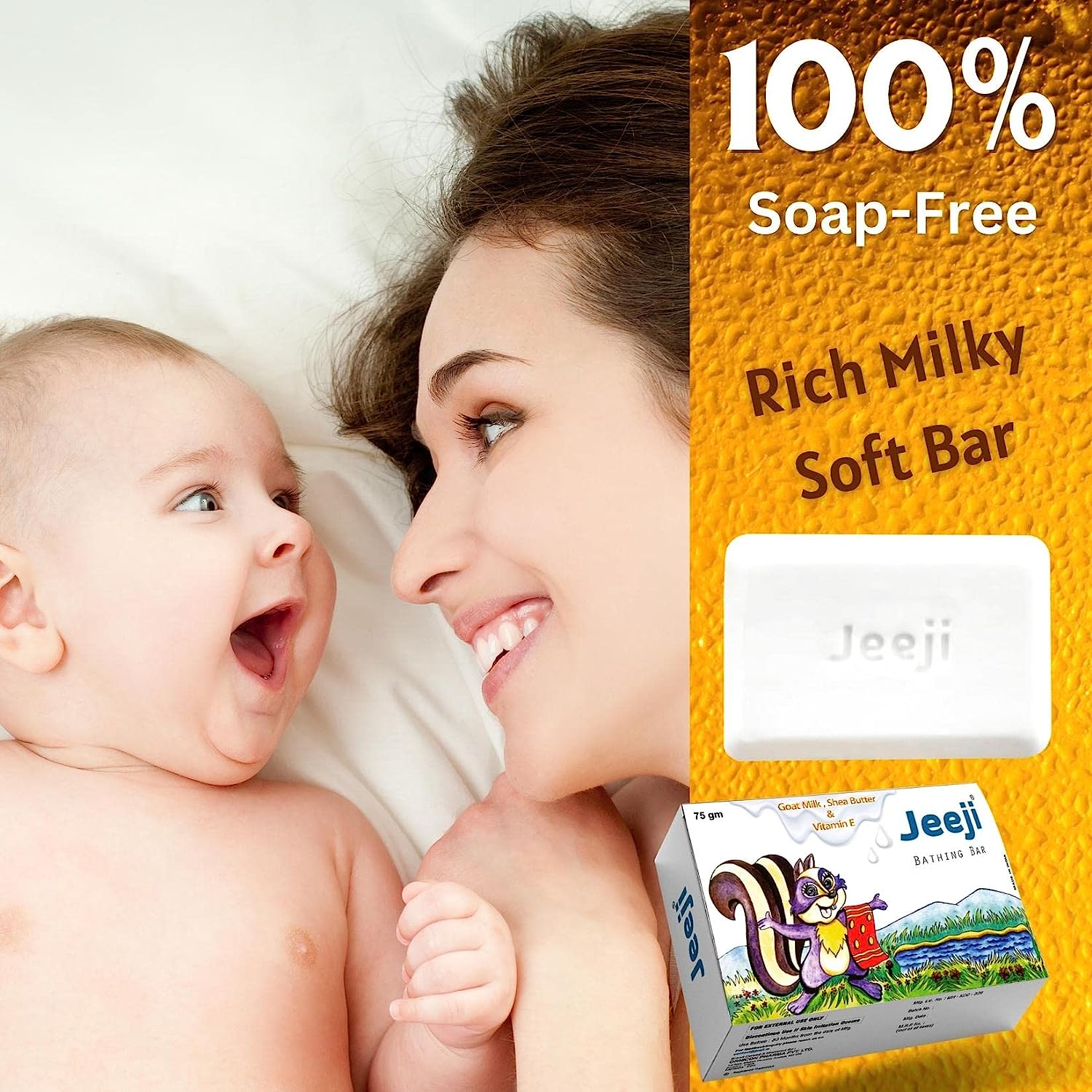 Baby Bathing Bar | Purely without Soap | Mild, Pleasant & Moisturizing | Goat Milk, Shea Butter, Oat Meal, Olive Oil and More | Natural Soft | For Daily Gentle Use | White Colour | 75gms each | Pack of 2