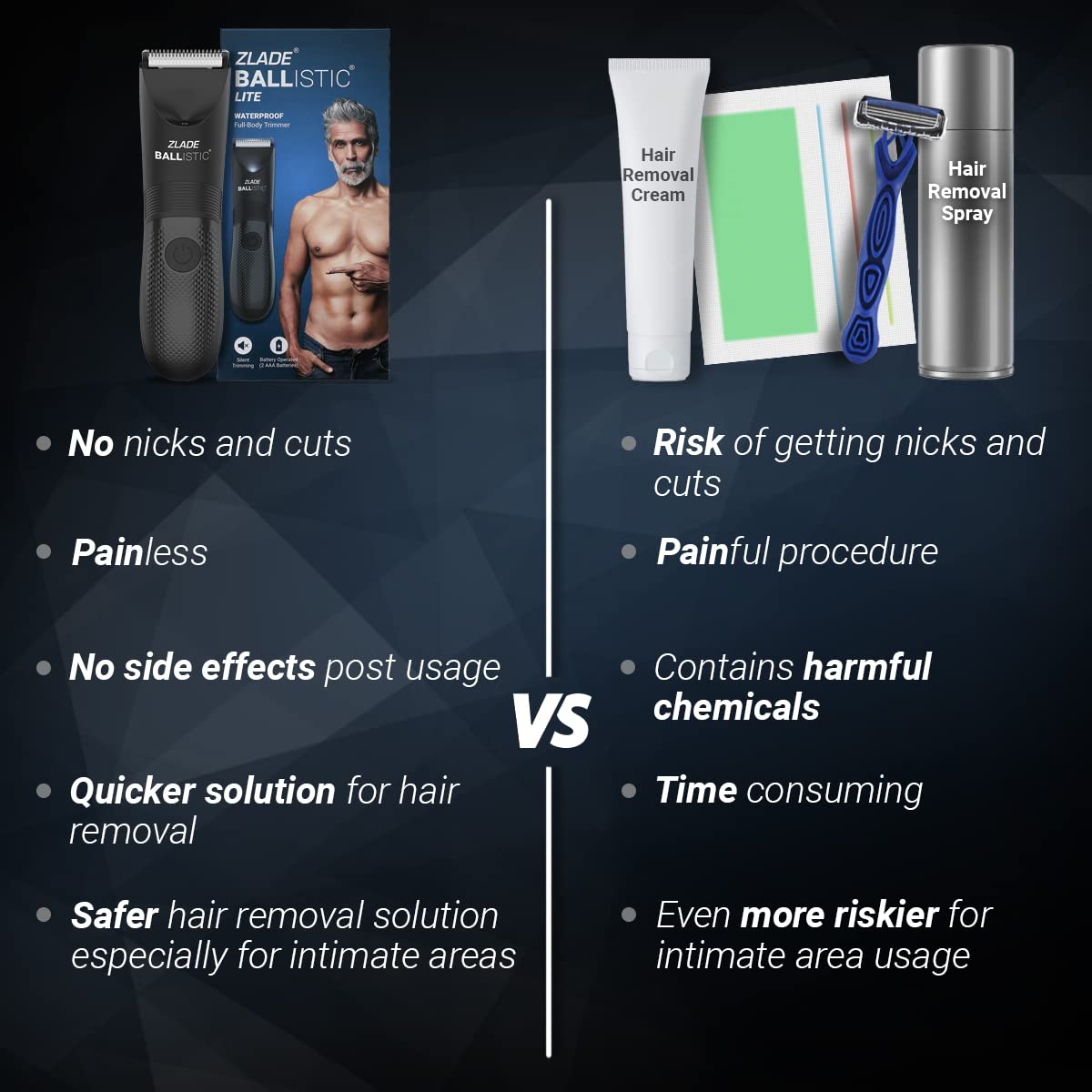 Ballistic LITE Manscaping Body Trimmer for Men | Beard, Body, Pubic Hair Grooming | Private Part Shaving | Waterproof, Cordless AAA Battery Powered | Smart Travel Lock - 3 Second Long Press Button to Start