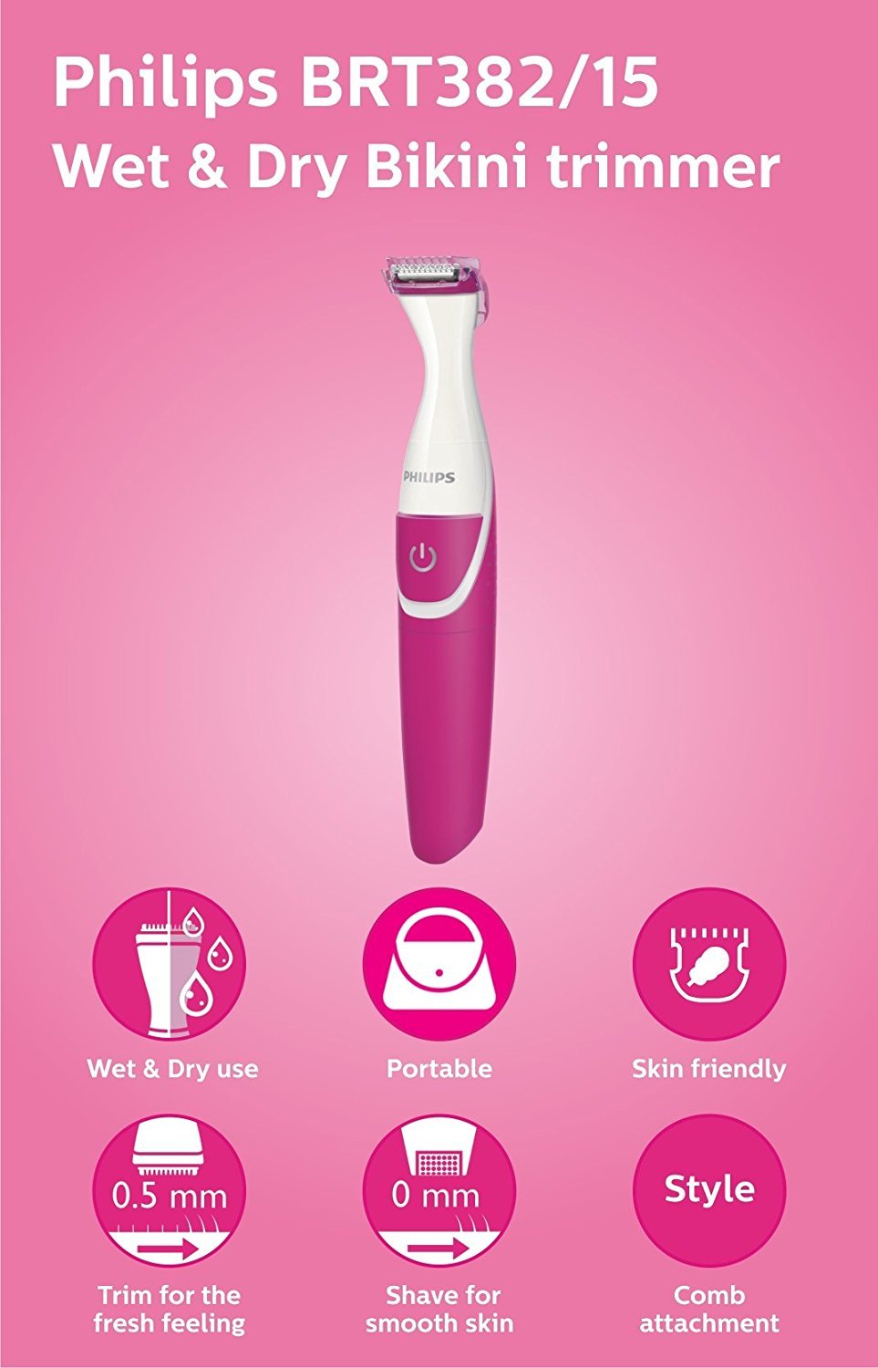 Philips BRT382/15 Cordelss Bikini Trimmer (White/Pink)