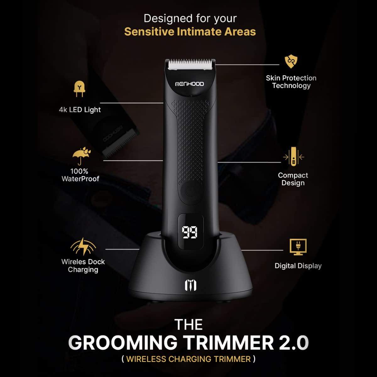 Men's WaterProof Cordless Grooming Trimmer 2.0 for Men, Featured with 4000k LED Spotlight & Power Status Display, Wireless Charging Support, Sensitive Skin Technology,150Min Runtime