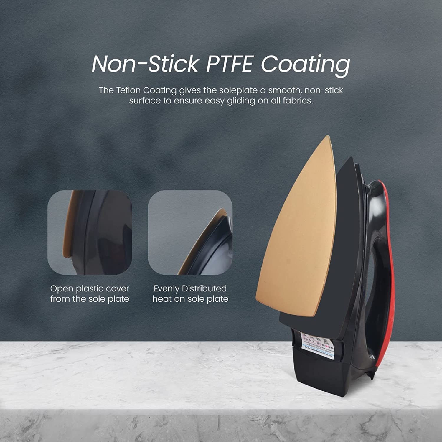 • Iron Base Type: This candes EI-106 dry iron is made by Teflon Coating with a Golden sole plate. Which provides you 10X more durability in comparison of steel base.