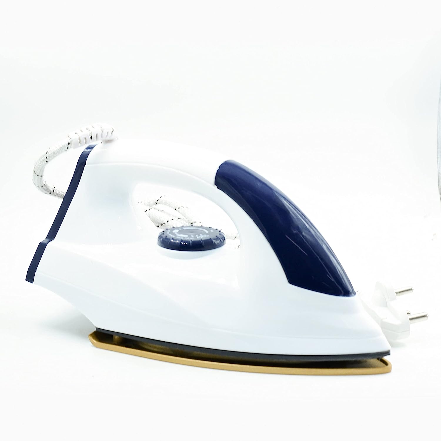 Swarg Homes Max (1000 Watts) Dry Iron Press for Clothes | Advance Golden Plate | Easy Grip Temperature Knob | Anti - bacterial Coating Technology Electric Iron Box (White/Blue)
