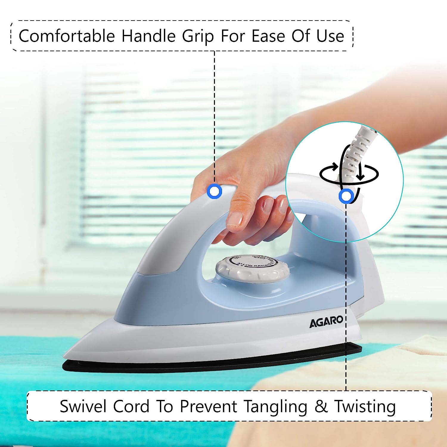 AGARO EVA 750 Watts Electric Dry Iron with Non-Stick Sole Plate (Blue)