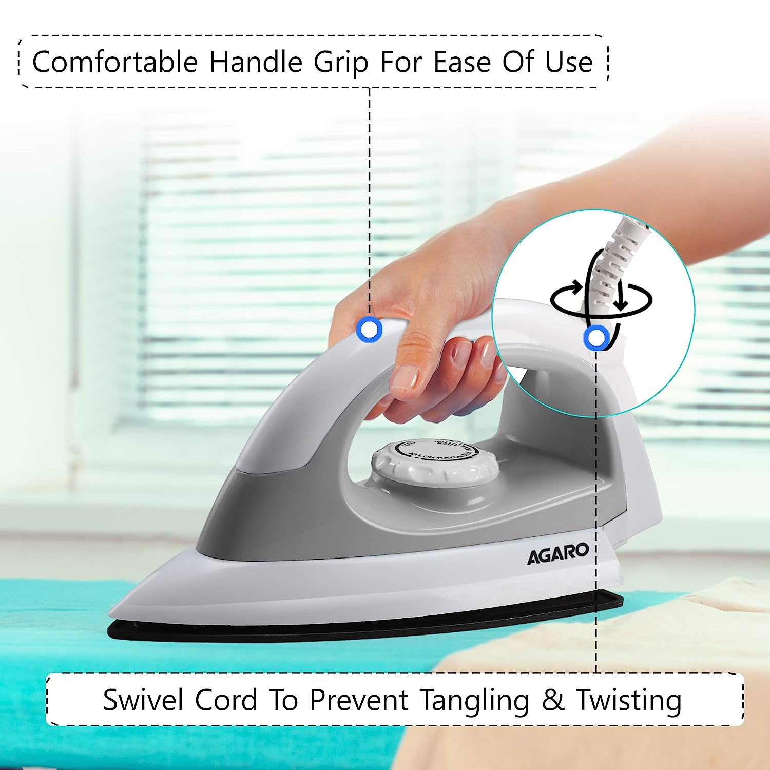 AGARO EVA 750 Watts Electric Dry Iron with Non-Stick Sole Plate (Grey)