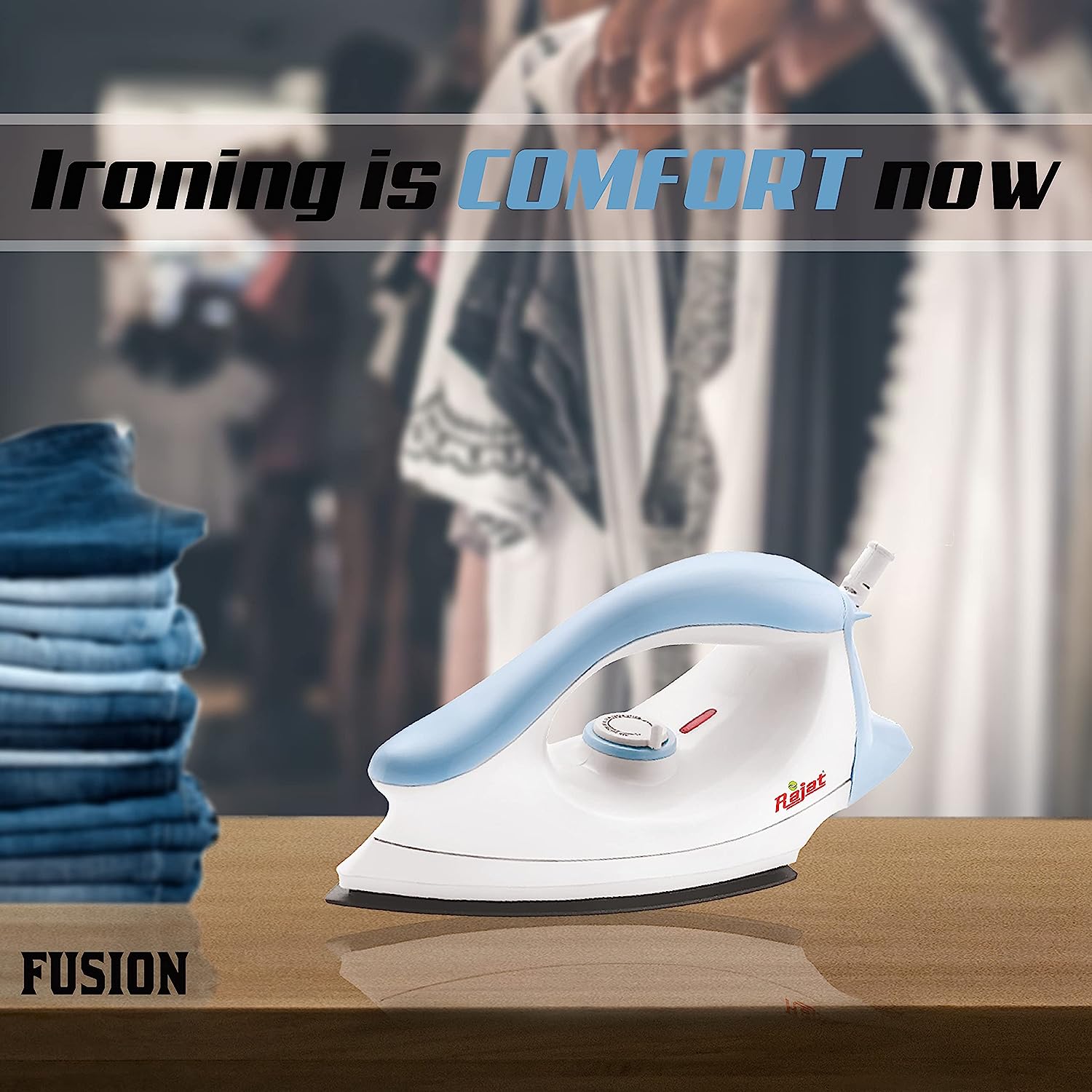 RAJAT Rajat Fusion Lightweight 1000-Watt Non Stick Soleplate Dry Iron with ISI Mark ( White & Sky Blue ), Standard