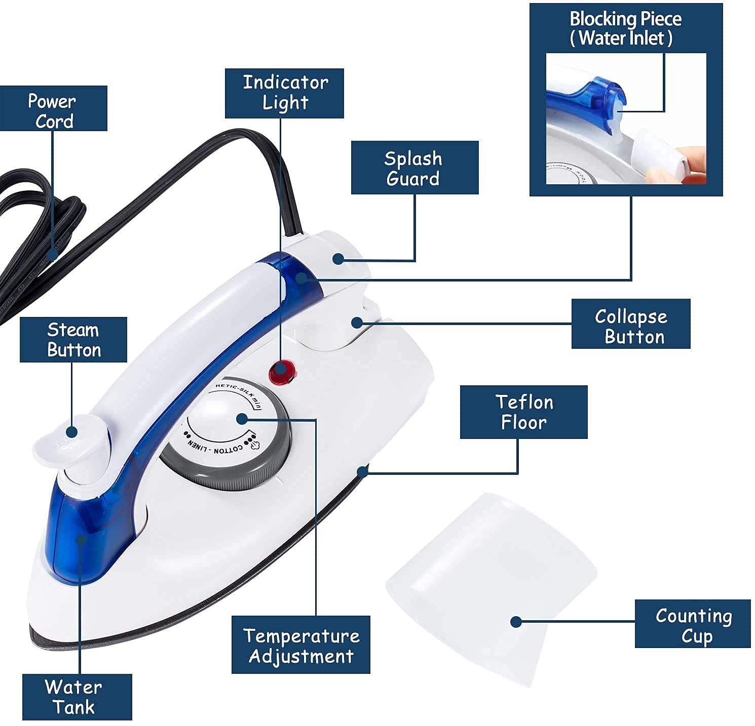 • FOLDABLE DESIGN- Portable travel-sized, lightweight and foldable, compact and easy to carry. This Steam Iron is 1.1 pounds only with 80ml detachable water tank, great for home use and travel.