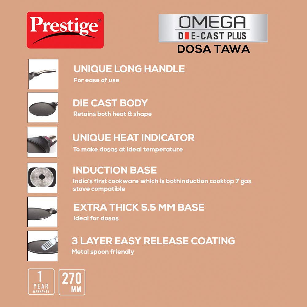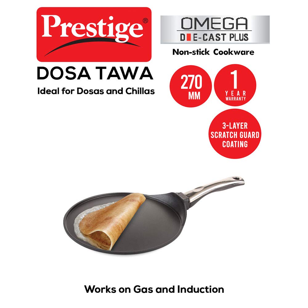 Prestige Omega Die-Cast Plus Non-Stick Dosa Tawa, 27 Cm (Ceramic, Aluminium, Black)