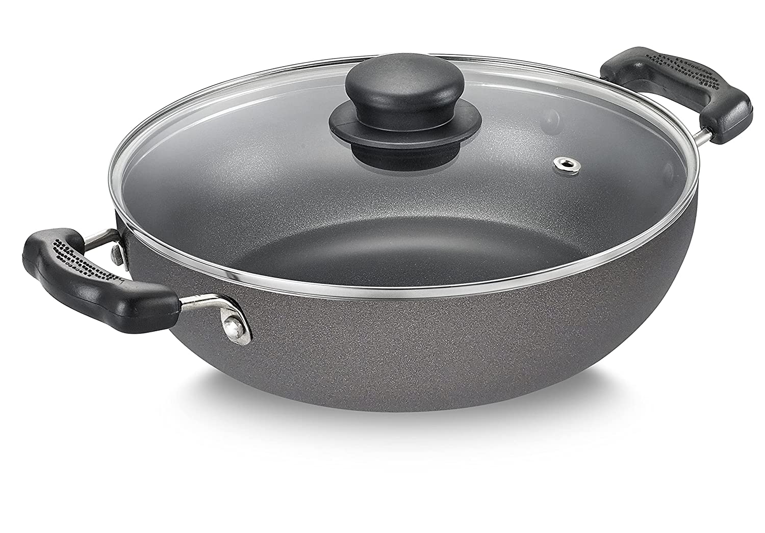 Prestige Aluminium Omega Select Plus IB Non-Stick Kadhai with Glass Lid, 24 cm, Multicolour, Medium