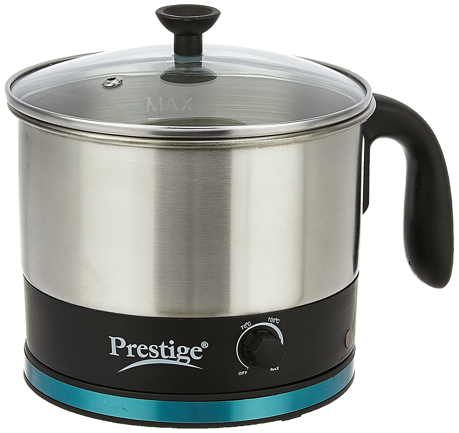 • Net Quantity: 1 Unit ; Auto Switch Off ; Other Features: Has Variable Temperature Control with Precise Temperature Settings in a Matter of Minutes, Has Stylish Glass Lid, Durable & Elegant Powder Coated Stainless Steel Body, Cool Touch Handle & Lid Knob, 360 Degrees Swivel Base, Easy to Clean Wide Mouth, Detachable Power Base