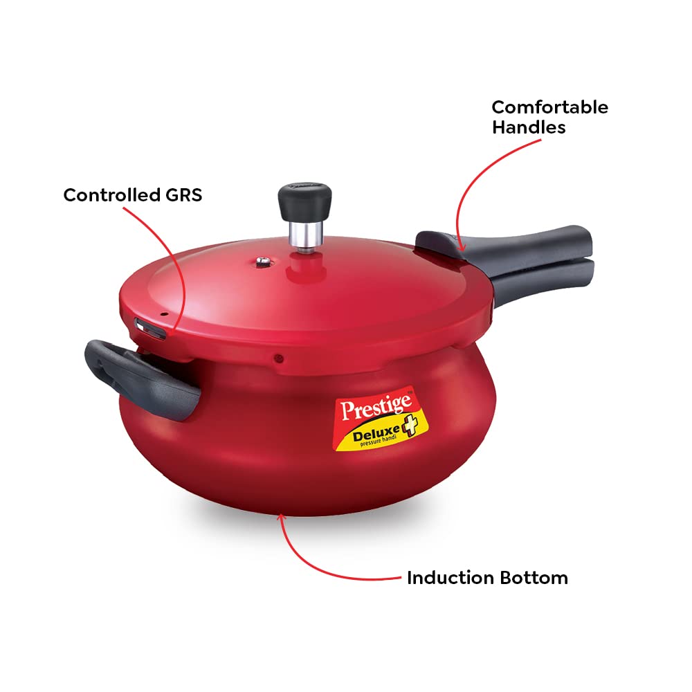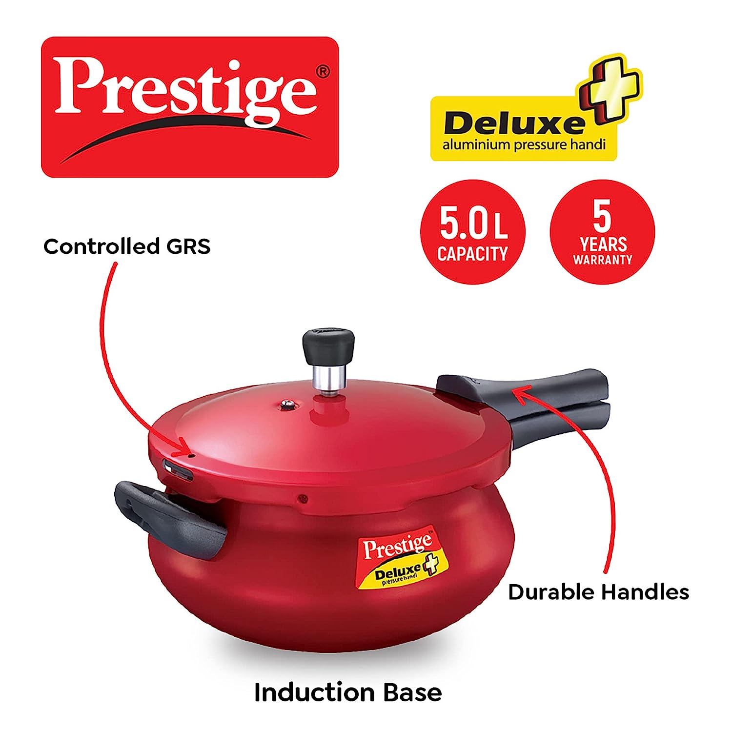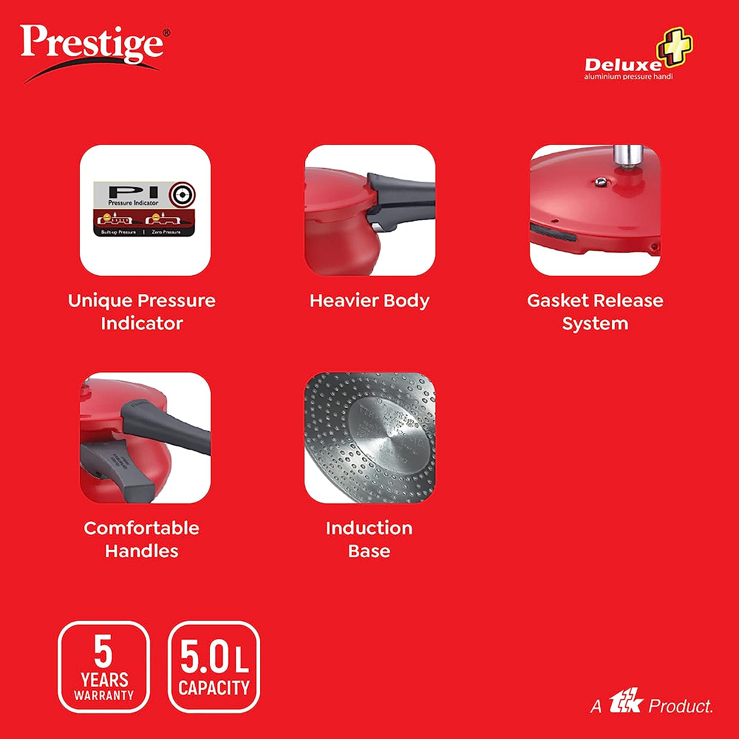 Prestige Deluxe Plus Aluminium Outer Lid Mini Pressure Handi, 5 Litre, Red