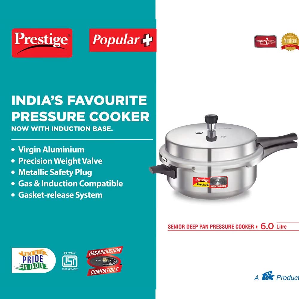 • BODY: Prestige Popular is an outer lid pressure cooker made from virgin aluminium which is light in weight and long lasting. The outer lid feature is suitable for both separator cooking and direct vessel cooking.