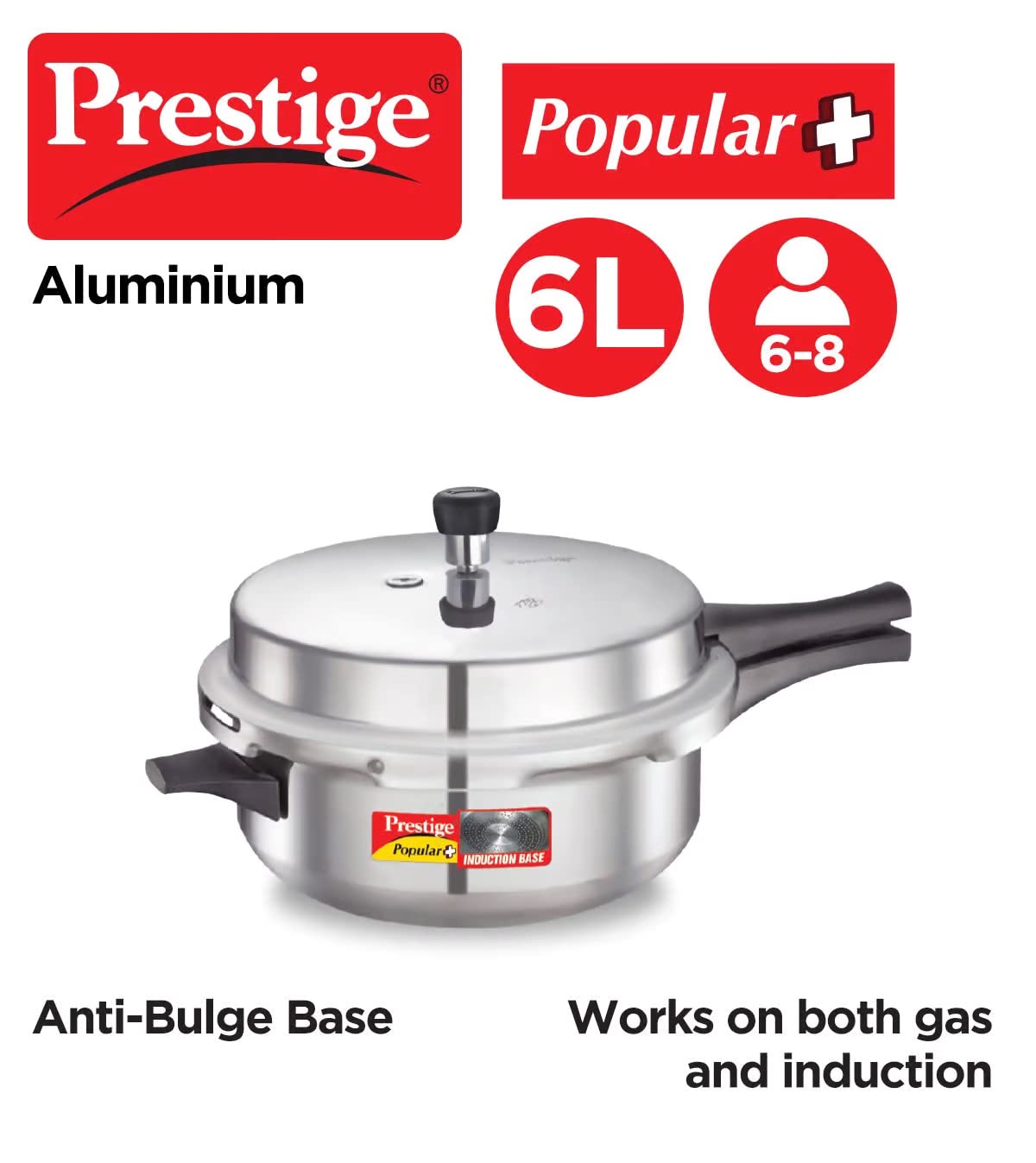 • BASE: Prestige Popular comes with an Aluminium base which is thick and machine pressed. The slight concave bottom ensures shape is retained for longer.