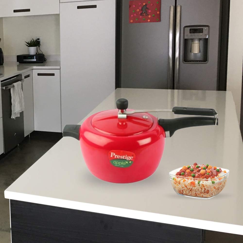 Prestige Apple Plus Inner Lid Aluminium Pressure Cooker, 5 Litres, Red