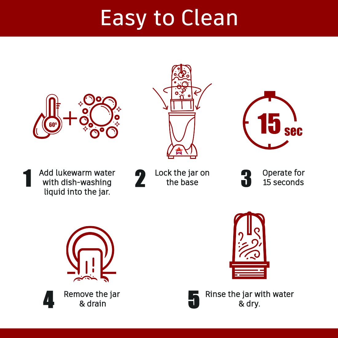 • Specialised Functions: The Long Jar (500ml) comes with 4-wing blade for mixing-blending and the Short Jar (300ml) with 2-wing flat blade for grinding to make all kinds of chutneys, shakes, smoothies and masalas. Two useful lids – for storing and sprinkling come with the product