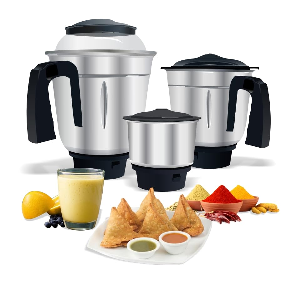 • Packages Includes1 Liquidiser Jar With Lid 1 Grinding Jar With Lid 1 Chutney Jar With Lid