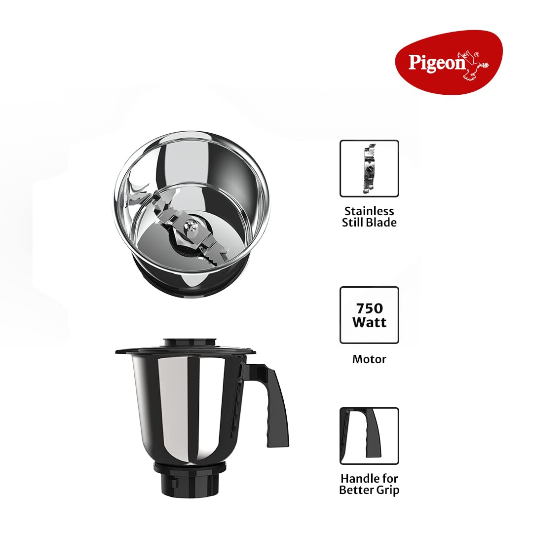 • [ Powerful & Efficient Motor ] : This Pigeon Mixer Grinder has powerful 750 Watt Copper Motor with 3 speed controls gives an exceptional performance and provides fine mixing and grinding of the ingredients at 3 different speed levels. The motor comes with an overload protector which protects it from sudden power surges.