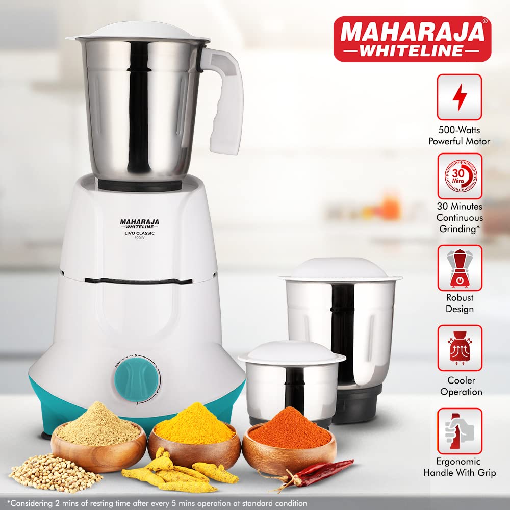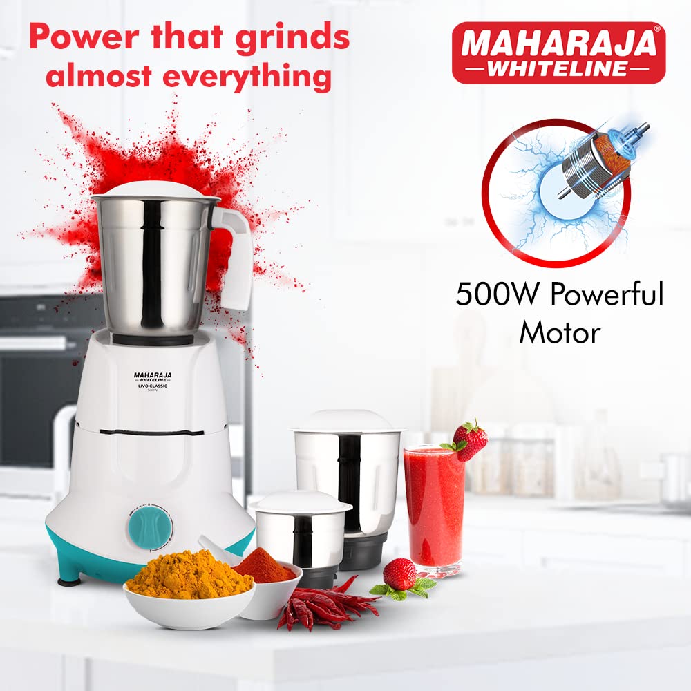 Maharaja Whiteline Livo Classic Mixer Grinder, 500W -MX-250 (Blue & White)