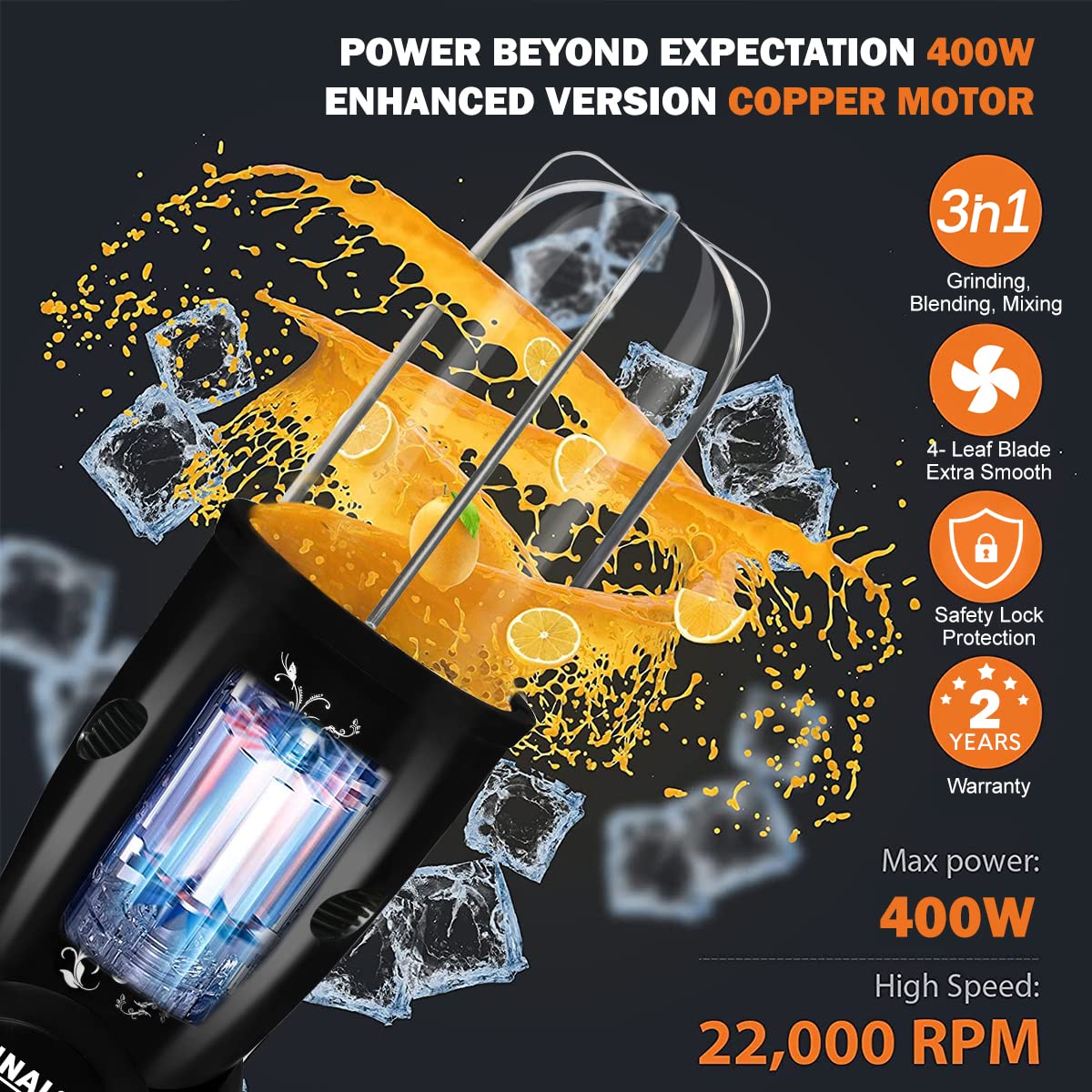 • BOOSTED POWER – 400W copper motor ensures powerful processing every time and allows to serve all your cooking needs. Now expand your creativity in the kitchen-chop, blend, mix, grate, puree and grind with INALSA nutri blender that makes cooking fun