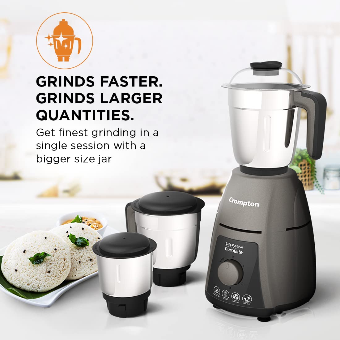 Crompton DuroElite 800Watt Mixer Grinder with Motor Vent-X Technology (3 Stainless Steel Jars, Mettalic Finish)