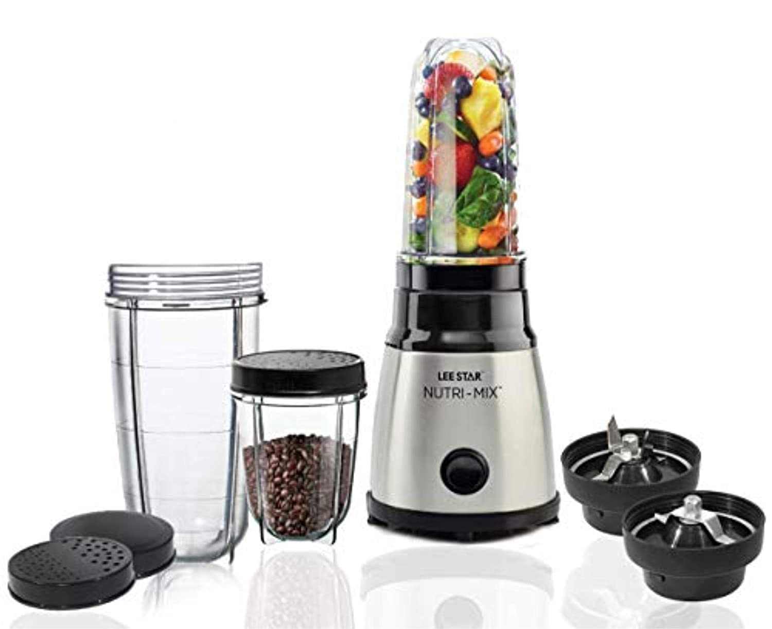 • Package Includes- 400 Watts Nutri Blender Grinder Mixer Motor Base Units With Operating Voltage Of 230 Volts With 2 Sets Of Stainless Steel Blades One For Blending, Other For Grinding, Two Unbreakable Inter-Changeable Jars (500Ml And 300Ml) With Lid And Seasoning Cap.