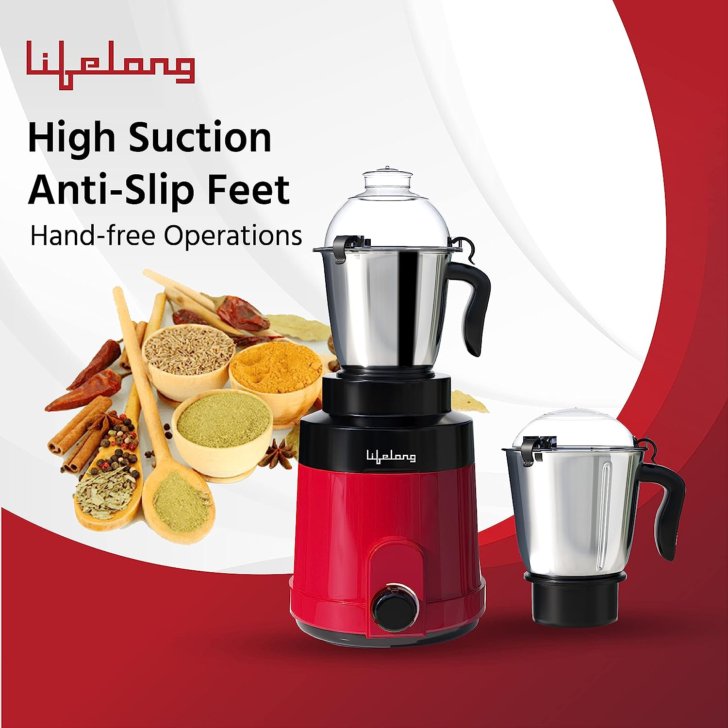 • This durable multi-purpose mixer grinder by Lifelong, is equipped with three stainless steel jars and can be your preferred kitchen companion. Its multi-purpose blades are perfect to grind raw masalas for delicious pastes as well as curries.