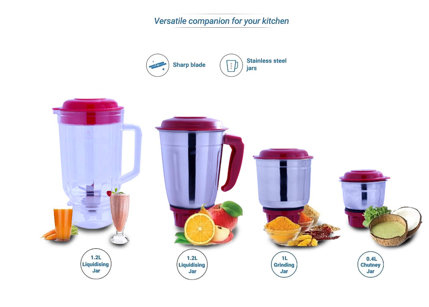 • Food Graded Stainless steel % Poly-carbonate jars